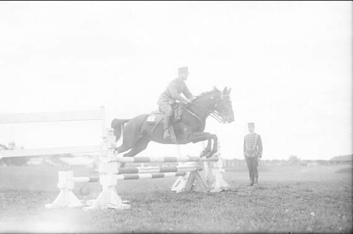 Inspektion i hoppning för kavalleriofficersaspirantskolan på fältet söder om kasern.