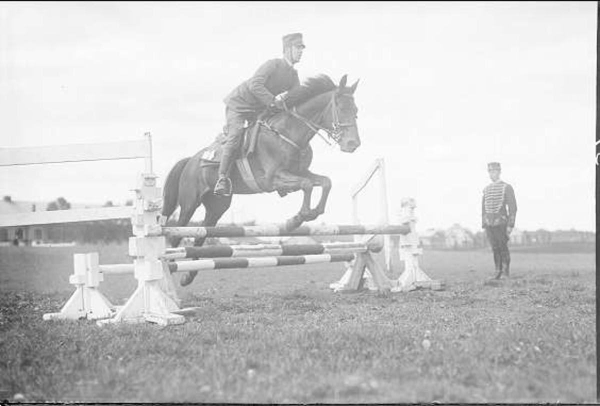 Inspektion i hoppning för kavalleriofficersaspirantskolan på fältet söder om kasern.