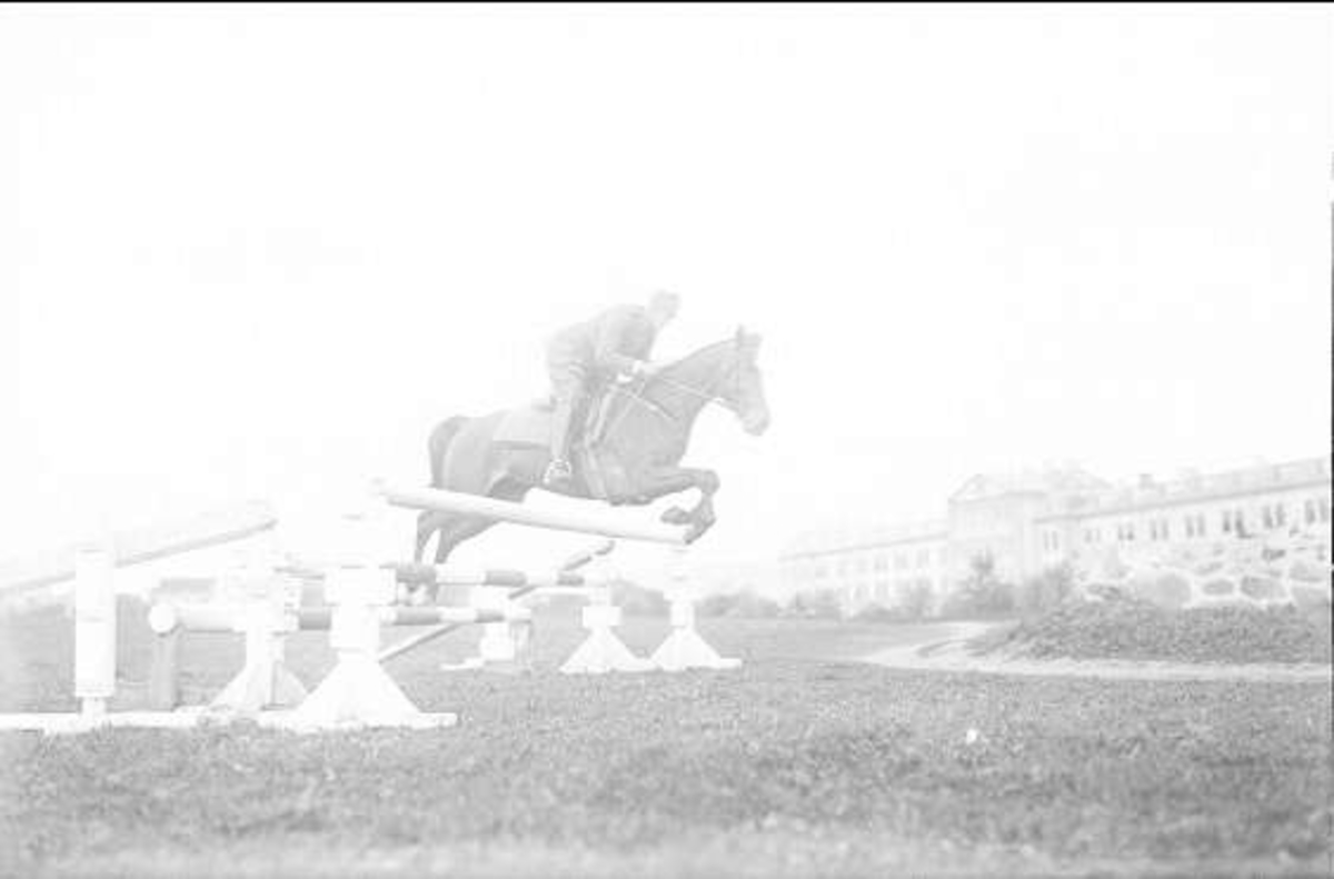 Inspektion i hoppning för kavalleriofficersaspirantskolan på fältet söder om kasern.