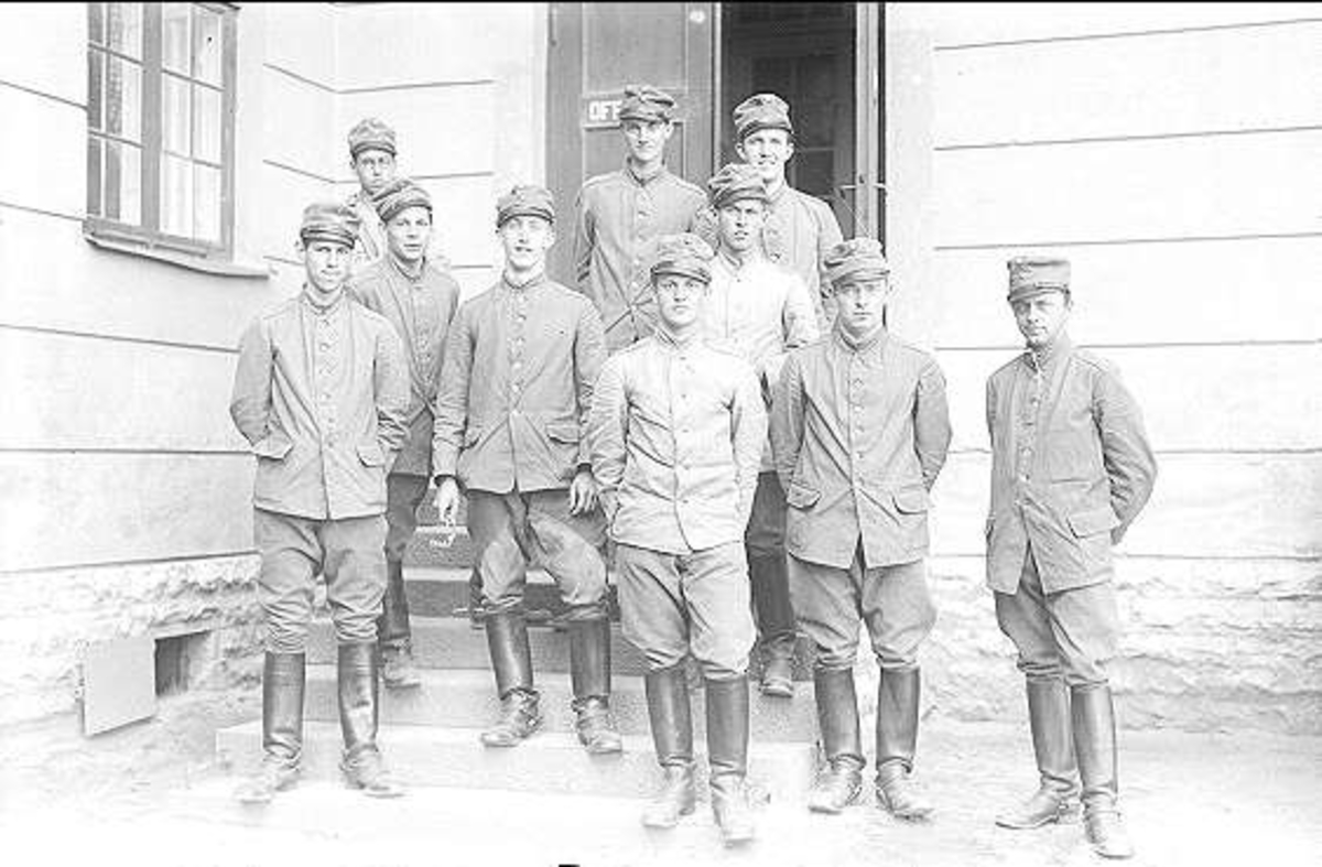 Del av aspirantskolan utanför ingången till förläggningen - nedre våningen i västra flygeln.
