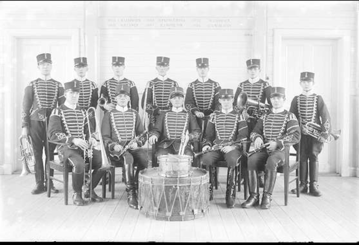 Den sista delen av K 3 musikkår som 1936 bestod av 16 musiker. Musikernas m/ä-uniformer skilde sig från övriga genom beteckningen på bägge axlarna, där fästes det så kallade "svalboet".