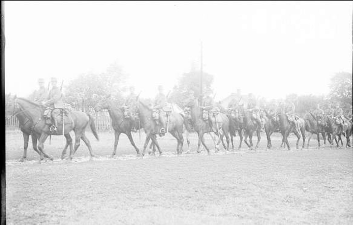 Aspirantskolan under inspektion av general Göran Gyllenstierna i terrängtjänst till häst.