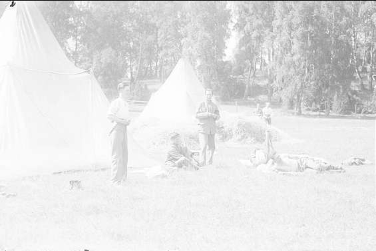 I bivacken. Rast innan slutgiltigt ordnande av tälten.