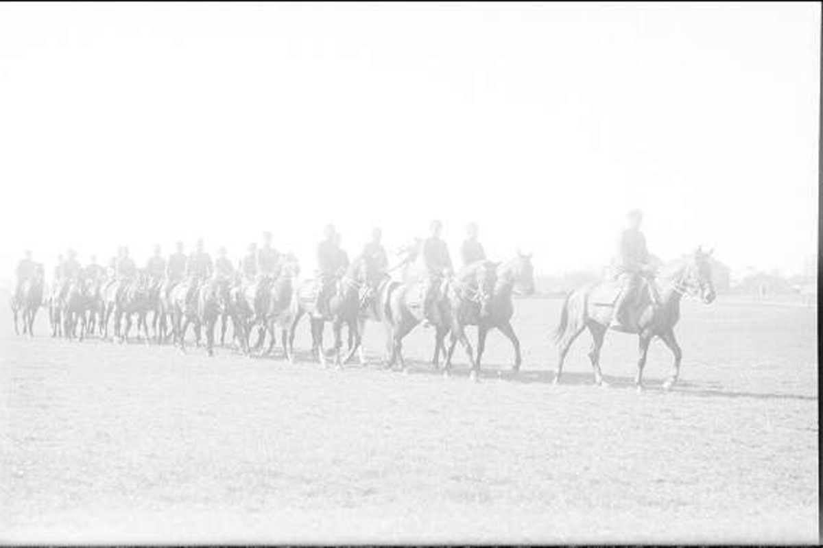På övningsfältet söder K 3 kasern. Hemmarsch efter ridutbildning.