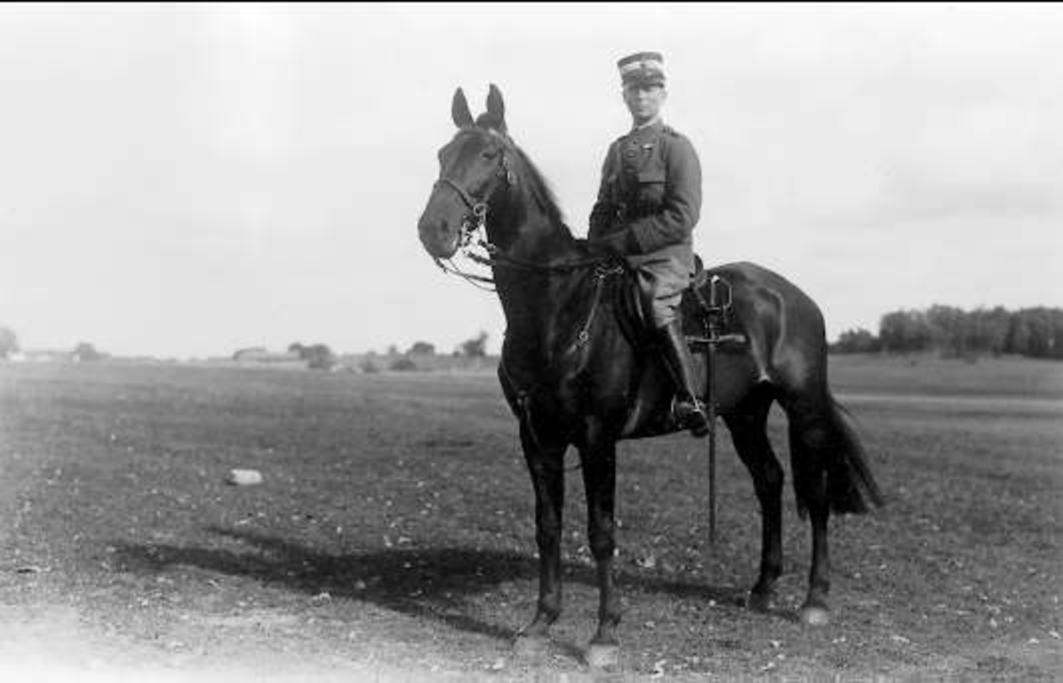 Överste Henry Peyron sekundchef K 3 1935-37, därefter kavalleriinspektör. Här på "Lusharpan" öster K 3 kasern. I bakgrunden Dunkehallsåsen.