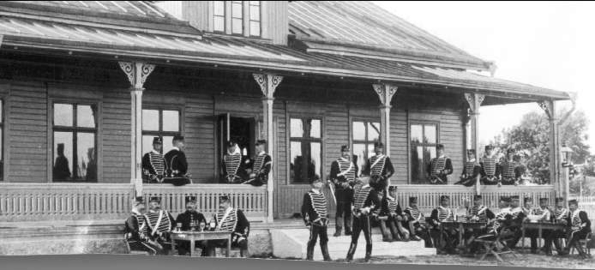 Underofficersmässen på södra delen av lägret i Sanna Hed. Underbefälskåren på besök hos underofficerskåren.