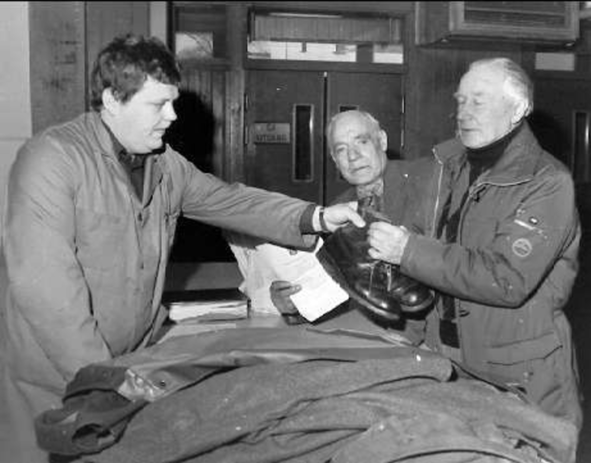 Utlämning av utrustning från intendenturförrådet till hemvärnsmän.