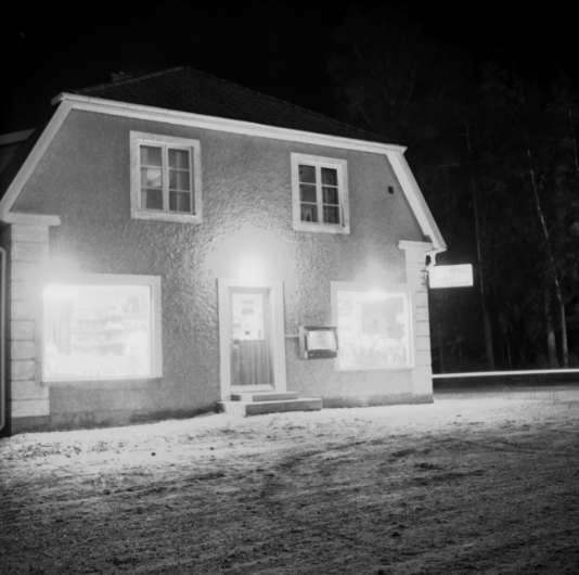 Bele Andrés pappershandel vid södra torget. Affären är numera riven och hyreshuset (Borgen), ägd av Wicke André ligger där. Endast neg finns.