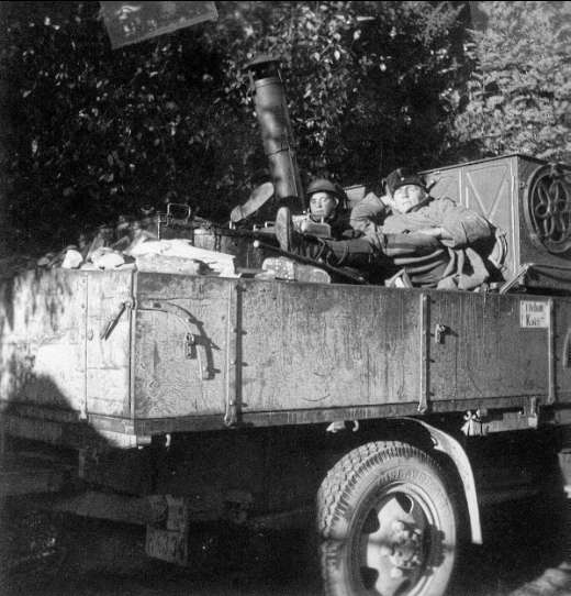 Samövningar med F 1 i Västerås och arméfälttjänstövningar i Gästrikland sept-okt 1936. För den enskilde soldaten har koktrossen och dess verksamhet stor betydelse. Här 1. Lv batt koktross under förflyttning. Fotot är en gåva av Tage Södergren.