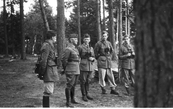 LV 1 Karlsborg. Regementschefen överste Bengt Bengtsson och överstelöjtnant Hagelin inspekterar pansarskjutning vid Kråk. Albumet är en gåva från förvaltare Tage Södergren.