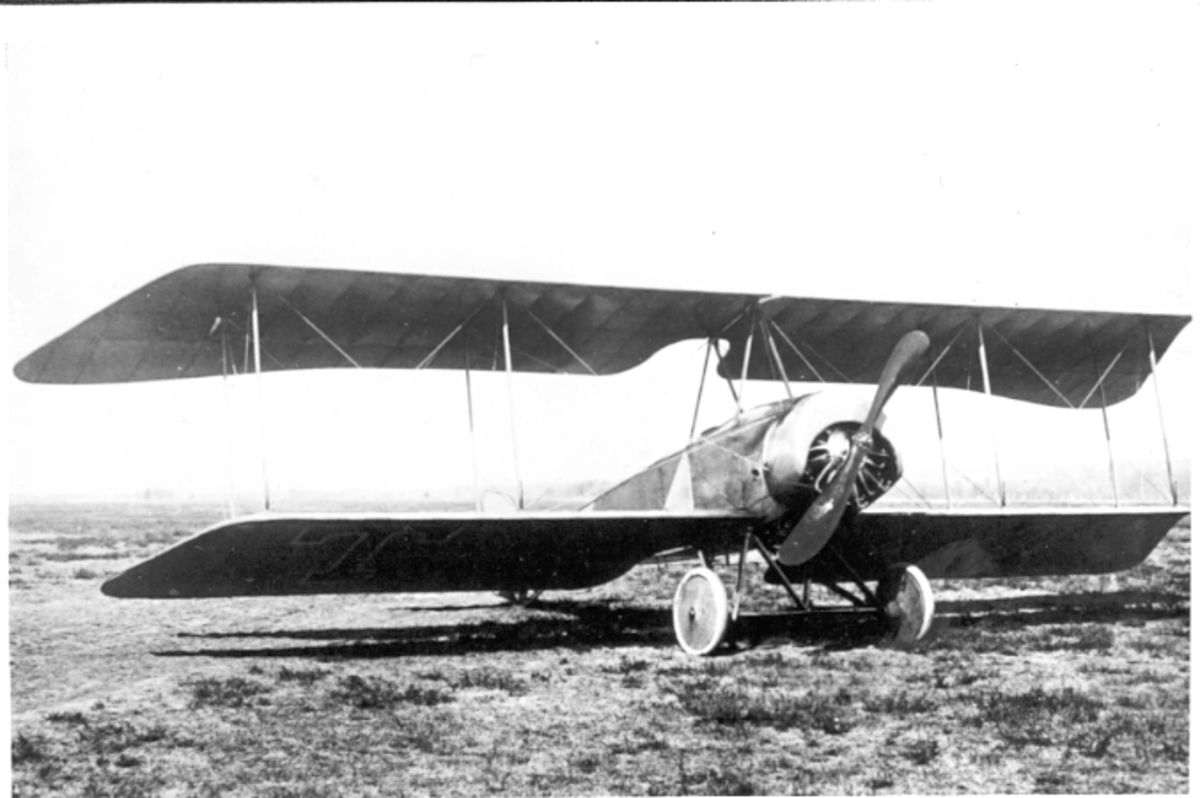 1916. Flygplan Thulin typ E. Med denna flygplanstyp landade von Porat på klöverfält i Gräshult.