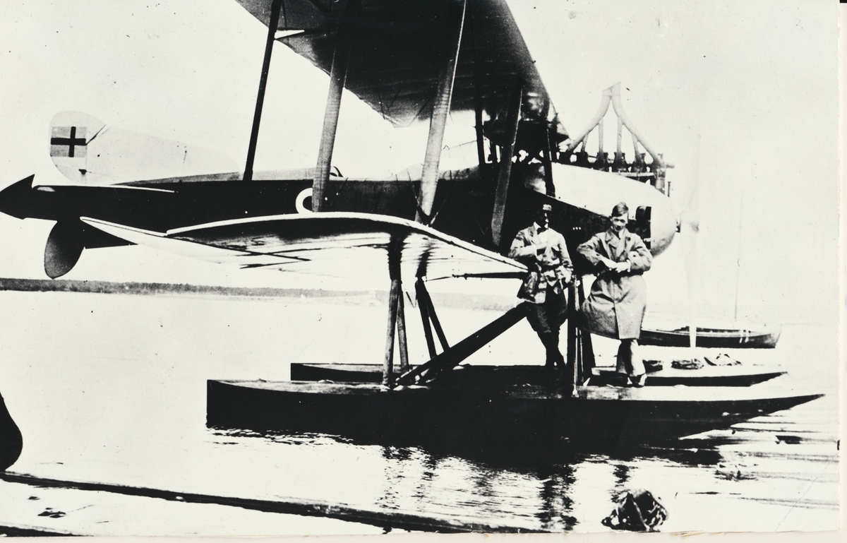 Flyget i Karlsborg innan F6.Flygplan LVG.Användes vid första försök till lufttrafik mellan Stockholm och Sundsvall år 1920. Förare:Ingenjör Hultström(till höger) Flygplanet ägdes av Svenska Luffttrafik AB Stockholm.