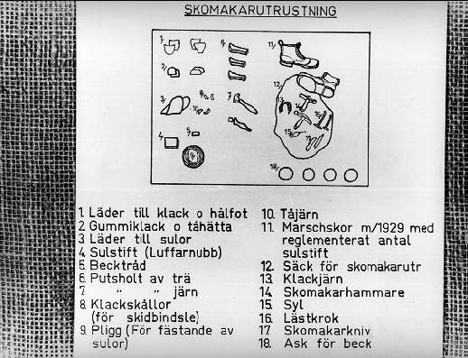 Ing 2. Skiss på skomakarutrustning tillverkade på sadelmakeriverkstaden.