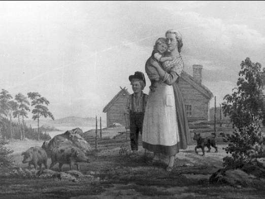 Tecknad skildring ur indelta soldatens liv. Soldaten kommer hem i dag. Förstoring 17 x 23 cm finns.