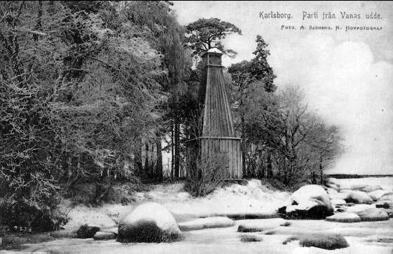 Vanäs fyr, på Vanäs udde. Tidigt 1900-tal. Foto: A Sjöberg. Förstoring 19 x 29 och 27 x 40 cm. Neg finns.