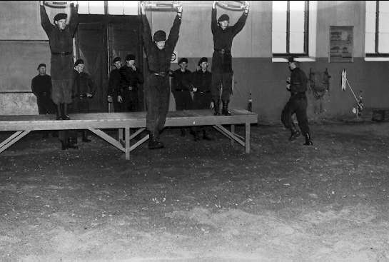 FJS, i träningshallen (fästningens gamla ridhus) drillas hoppdetaljerna - främst landningen - intensivt.
