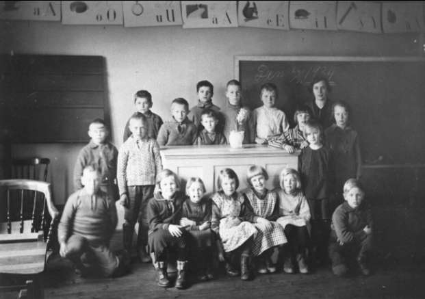 Svanvik, Stora Perstorps skola år 1934. Lärare Maja Elvbring - Bylund. Förstoring 29 x 40 cm. Neg finns.