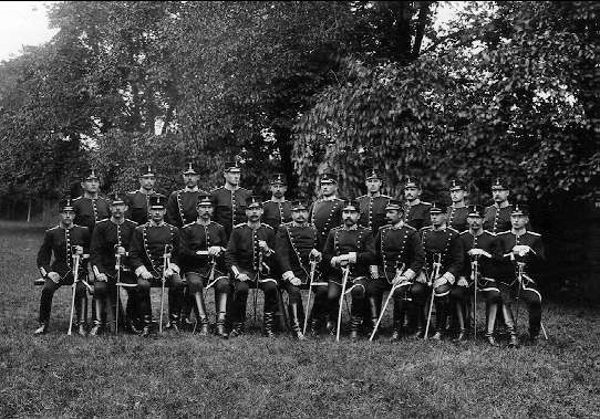 Karlsborg, Göta trängkår, gruppbild av officerskåren omkr 1900. För namn se bilaga till 54794. Foto: Axel Sjöberg.