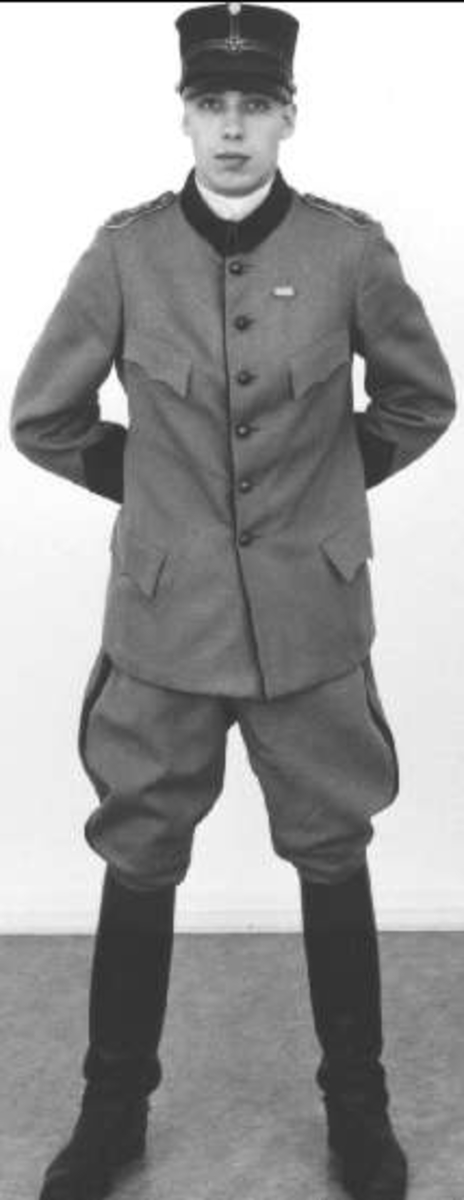 Modell 1895 ersattes av den första för hela armén gemensamma grå uniformen modell 1910.