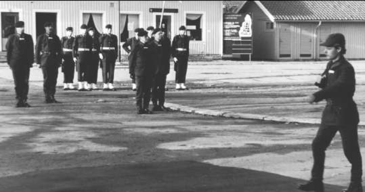 Förbimarsh på Fästningstorget för Regementschefen. Åtföljt av stabschefens standar och standarvakt.