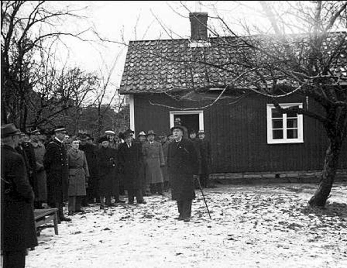 Kamratföreningen samlad i Gärdhems trädgård framför husartorpet nr. 49 Jonsboda, Mellomgården.