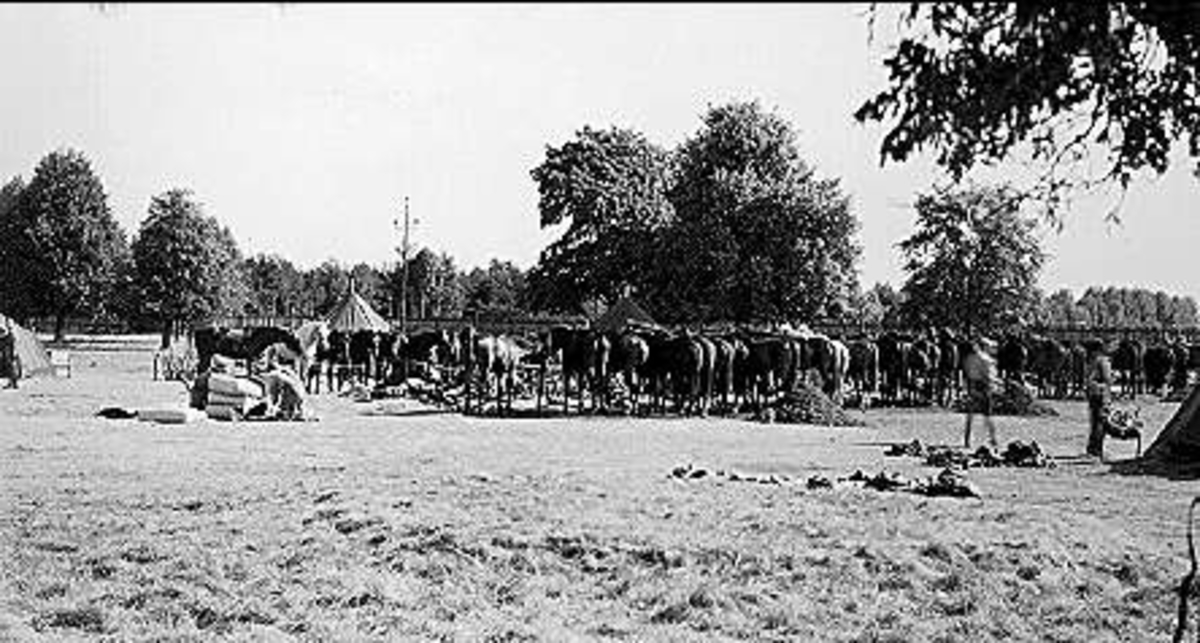 K 3 sommarmarsch till Sanna hed 1947. Livskvadronens hästbivack i Sannahedslägret.