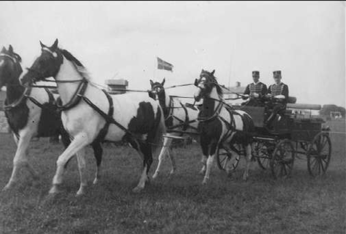 1933 - 1951. Fanjunkare Erik Petterson med K 3 berömda spann med 4 skäckar.