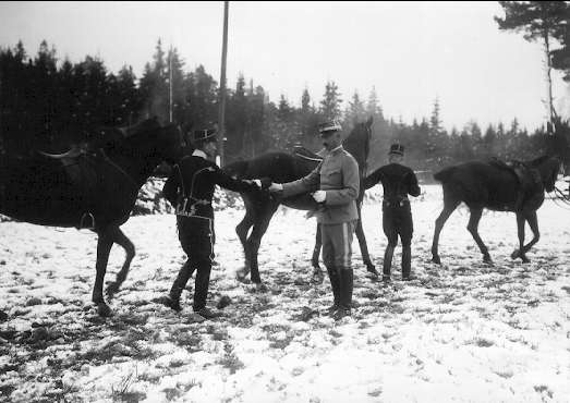 Utdelning av granriskvistar som bevis på väl genomförd jaktritt. Strömsholm 1910-11.