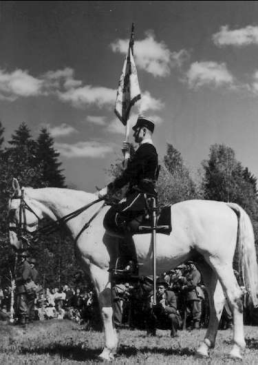 Löjtn William (Bile) Hamilton som standarförare vid ceremoni på Sannahed.