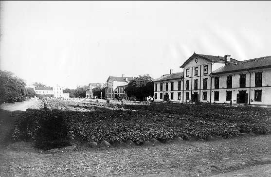 Infanterivolontärskolan Karlsborg, senare rekrytskolan för infanteriets off- och res.off. Aspiranter 1878 - 1927. Potatisodling på kasernområdet. Hoffoto.