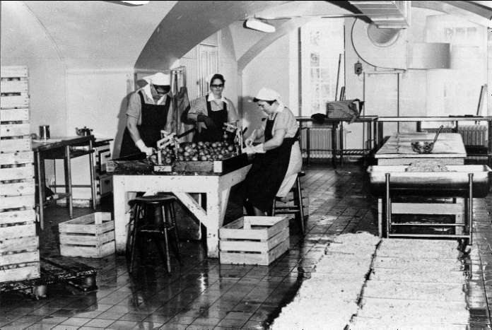 Fästningen. Anställda vid vakuumtorken, här pågår äppelurkärning år 1969.