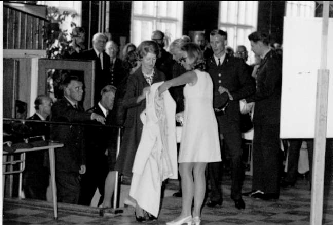 Karlsborg, fästningen. Prinsessan Christinas besök på regementet jubelåret 1969. Här vid middagen i matsalen.
