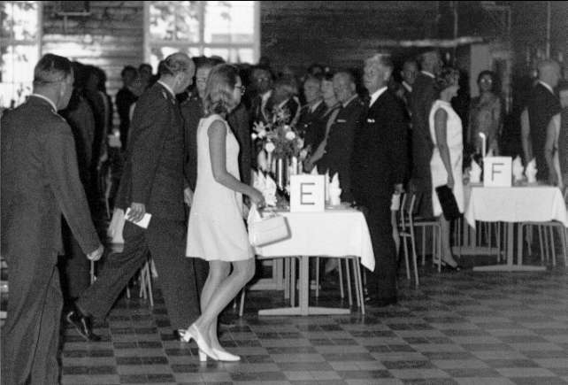 Karlsborg, fästningen. Prinsessan Christinas besök på regementet jubelåret 1969. Här vid middagen i matsalen.