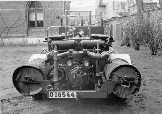 Karlsborg, garnisonsbrandkårens brandbil av äldre årgång.
