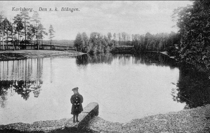 Karlsborg, "våta graven" omkr 1885. På västra sidan byggdes landfästen av betong till förankring av brofästen. Kortet finns ej på museet.