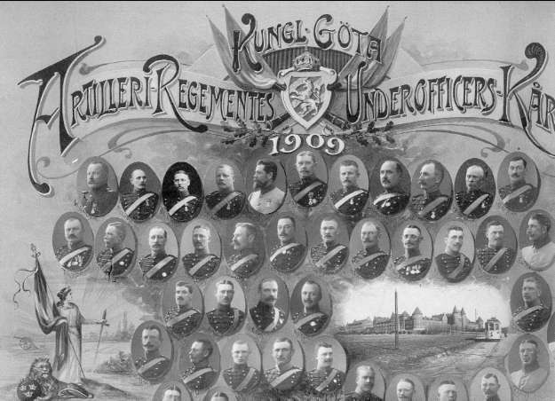Kungl. Göta artilleriregementes underofficerskår 1909. Foto: A. Jonason kungl. Hovfotograf, Göteborg.