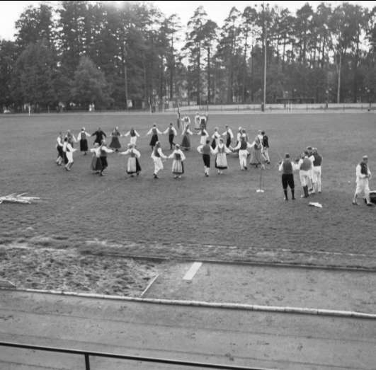 Danska folkdansare på besök i Karlsborg, uppvisning på Moliden. Endast neg finns.