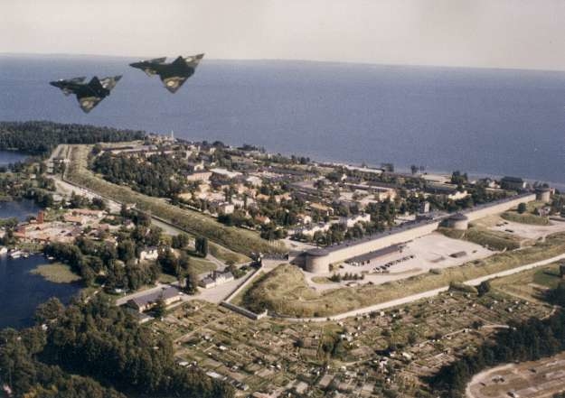 Flygfoto över fästningen, Karlsborg. Fotot är en gåva av Karin Zeidlitz-Andersson.