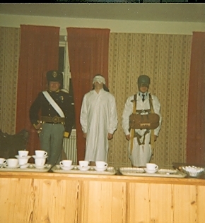 Underofficerare i S2:s gymnastiksal. Troligen 1960-tal. Från höger: Olle Edh, Christer Weinö, Evert Fingal.