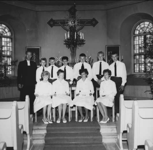 Konfirmandgrupp, Breviks kyrka. Konfirmandlärare: Sören Thörnblad. Endast neg finns.
