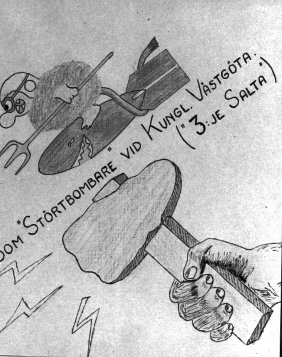 F6 Karlsborg 1943. Divisionsemblem som förekom på 3. divisionens flygplan under åren 1943-1944, "Klot-Johan" och "Tors hammare". Albumet är en del av en donation från Karl-Axel Hansson, Karlsborg. Förteckning över hela donationen finns i albumet samt som Word-dokument.