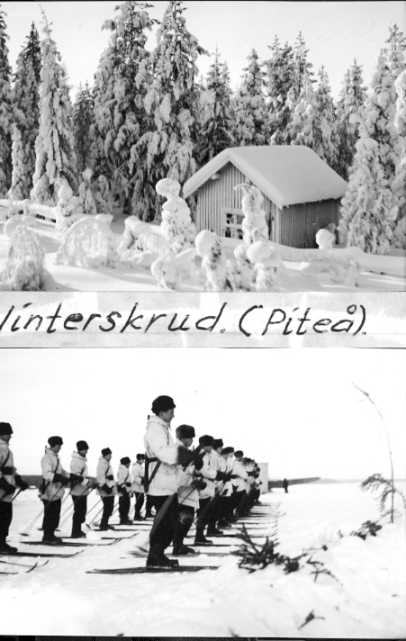 F6 Karlsborg 1942. Vinterövning 8/2-8/3 Piteå. Albumet är en del av en donation från Karl-Axel Hansson, Karlsborg. Förteckning över hela donationen finns i albumet samt som Word-dokument.