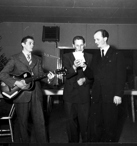 F6 Karlsborg 1954. Tekniska kårens "lillejul" i Hantverkslokalen. Albumet är en del av en donation från Karl-Axel Hansson, Karlsborg. Förteckning över hela donationen finns i albumet samt som Word-dokument.