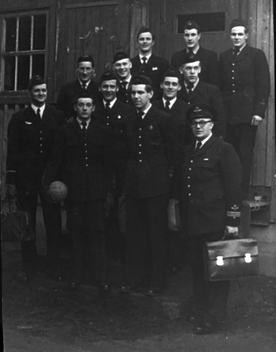 F6 Karlsborg 1953. F6 handbollslag. Överst från vänster: Tage Andersson, 2 värnpliktiga, Bror Pettersson, Rolf Karlsson, Erik Lundgren, Hans Malmström, Sven Stål, Rune Waldenstedt, Tore Pettersson, Lennart Salomonsson, lagledaren kassachefen och förvaltaren Erik Larson. Albumet är en del av en donation från Karl-Axel Hansson, Karlsborg. Förteckning över hela donationen finns i albumet samt som Word-dokument.