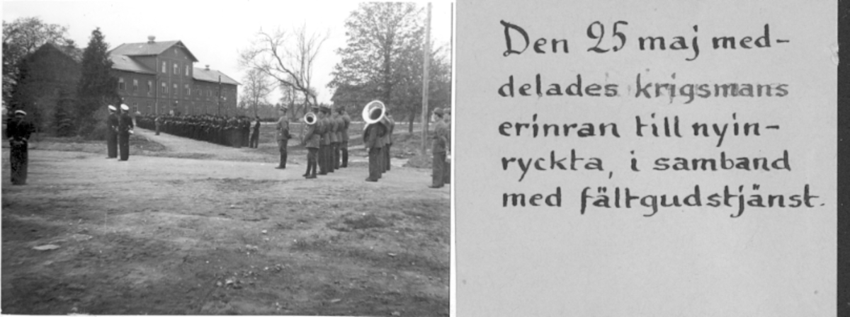 F6 Karlsborg. Krigsmans erinran till nyinrykta i samband med fältgudstjänst.