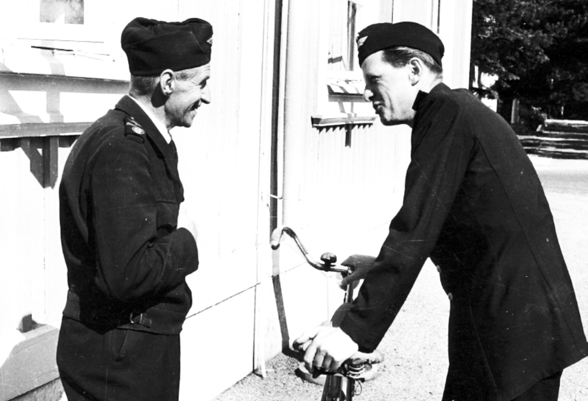 F6 Karlsborg 1957. Från vänster: Brandman Eurén, kapten Brostrand.