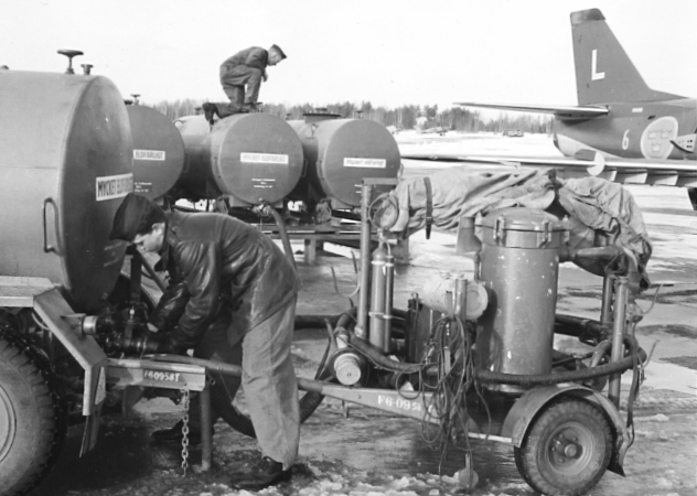F6 Karlsborg 1958. Pumpaggregat för tankning av flygplan.