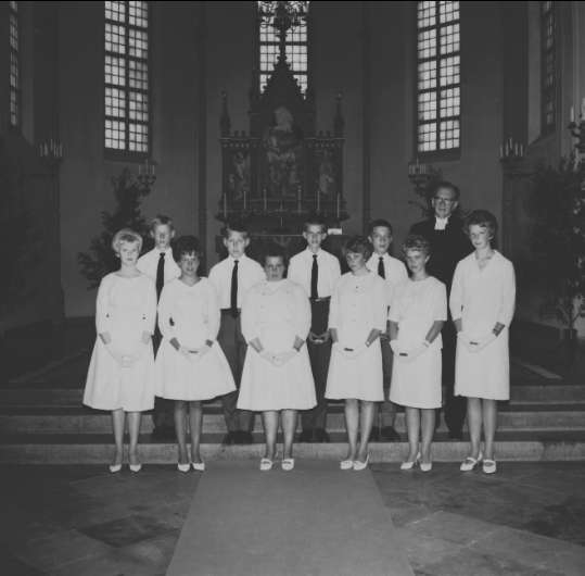 Konfirmandgrupp, Undenäs kyrka. Konfirmandlärare: kyrkoherde Carlberg. Endast neg finns.