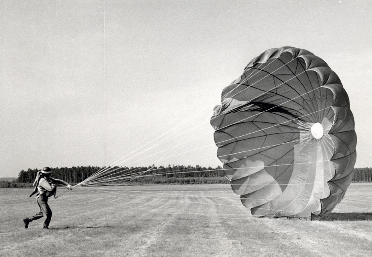 Fallskärmsjägarskolan i Karlsborg 1956.Landning .