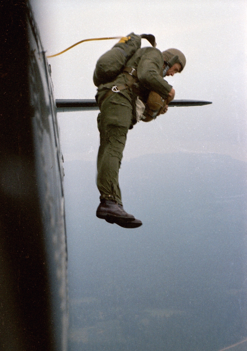 Fallskärmsjägarskolan i Karlsborg 1963.Uthopp.